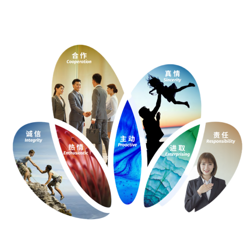 诚信 合作 真情 责任 热情 主动 进取